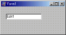 また、「Standard」「Additional」「Win32」「System」などと書かれたタブがあります。 これは先程説明したパーツ群です。 ここにあるいろいろなパーツをフォーム上に配置してアプリケーションを開発して行くわけです。 この各種パーツの事をコンポーネント(※1)といいます。 試しに、「Standard」にある左から6番目にあるコンポーネント(一行テキストボックスらしきもの)をクリックして、 フォーム上のどこでもいいので配置してみて下さい。下のようになったでしょうか?